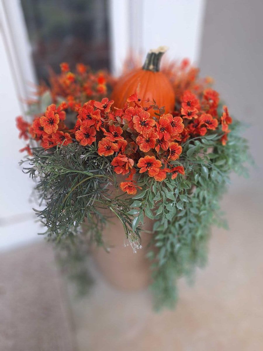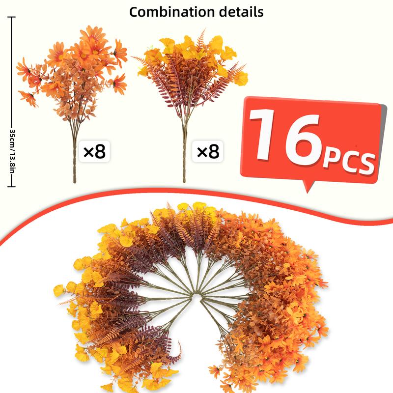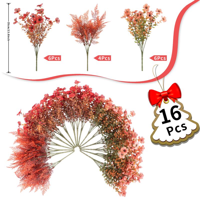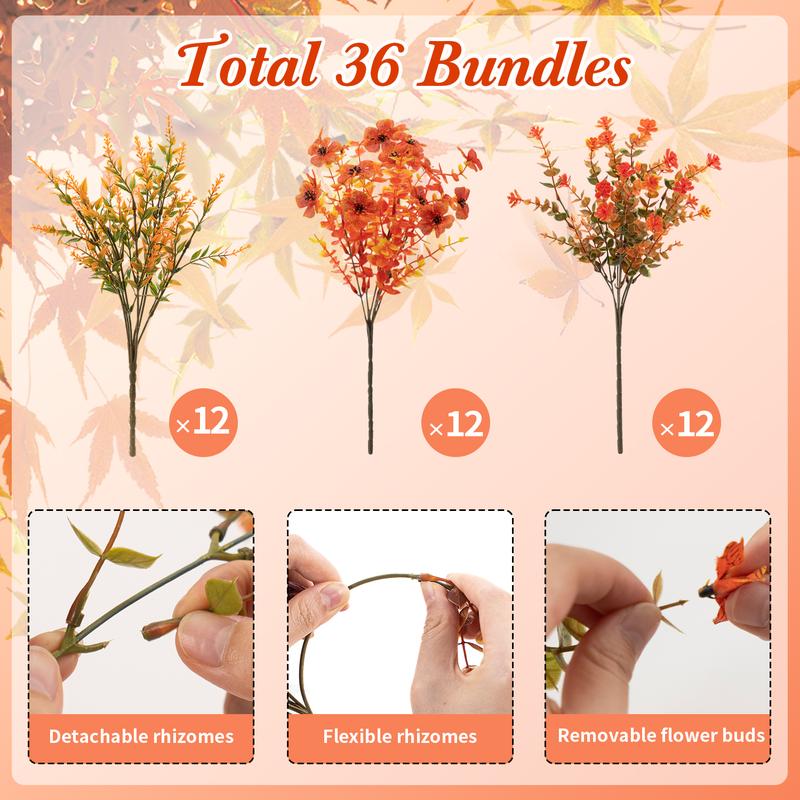 This vibrant set of 24 faux floral bundles in shades of orange and red adds a cheerful touch to any decor. Durable and easy to maintain, they’re perfect for vases, centerpieces, or wreaths. Enjoy versatile styling options for any occasion without the hassle of upkeep!